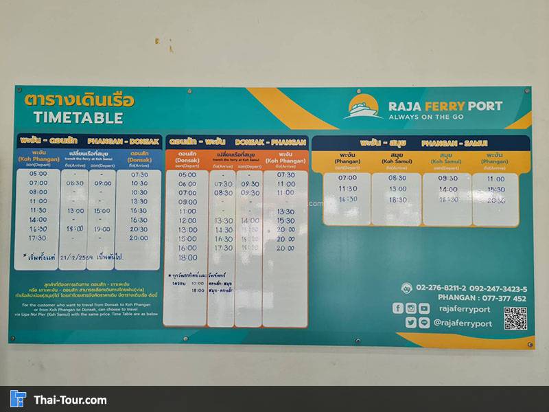 รายละเอียดเพิ่มเติมติดต่อบริษัทเฟอร์รี่ไลน์และส่งเสริมทราเวิลเซ็นเตอร์ โทร.(077) 285124-6 โทรสาร 285127 สำนักงานเกาะสมุย โทร. (077) 421316-9 โทรสาร 420167 และสำนักงานเกาะพะงันโทร. (077) 377046 โทรสาร 377046 |
