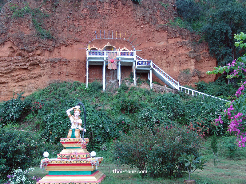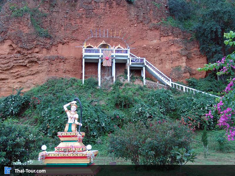 อยู่ในตำบลย่านรี อ.สามเงา จากตัวจังหวัดใช้เส้นทางหมายเลข 1107 ผ่านทางแยกไปเจดีย์ ยุทธหัตถีไปประมาณ 25 กม. หรือถ้าใช้ทางหลวงหมายเลข 1 ถึงกม.ที่ 463 จะมีทางแยกช้ายเข้าเขื่อนภูมิพลไปประมาณ 10 กม. ถึงอ.สามเงาจะมองเห็นขุนเขาใหญ่ลูกหนึ่งชาวบ้านเรียกว่า "ผาสามเงา" เพราะที่เชิงเขาริมหน้าผานั้นเจาะเป็นช่องลึกเข้าไปในเนื้อภูเขาเรียงกัน 3 ช่อง ประดิษฐานพระพุทธรูปปิดทองช่องละองค์ มีบันไดไม้ต่อให้นักท่องเที่ยวขึ้นไปนมัสการพระพุทธรูปได้ ตามตำนานเล่าสืบต่อกันมาว่าพระนางจามเทวีราชธิดาแห่งกรุงละโว้เป็นผู้สร้างเมื่อครั้งเดินทางตามลำน้ำแม่ปิงเพื่อขึ้นไปครองเมืองหริภุญไชยหรือลำพูน