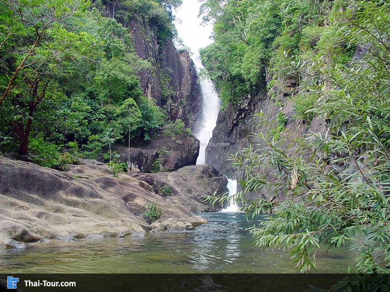 อยู่ห่างจากอ่าวคลองพร้าว 3 กม. จากนั้นต้องเดินป่าอีกประมาณ 20 นาที เป็นน้ำตกขนาดใหญ่ มี 3 ชั้น