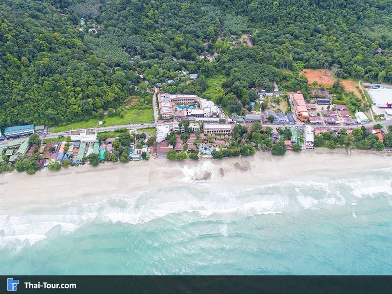 หาดทรายสีขาว กว้างยาว เหมาะแก่การเล่นน้ำ ทำกิจกรรมบนชายหาด รีสอร์ทเรียงรายอยู่ติดๆ กัน ตลอดแนว มีถนนตัดด้านหลังรีสอร์ท สิ่งอำนวยความสะดวกมากมาย เช่น ร้านอาหาร ธนาคาร เคาว์เตอร์ทัวร์ดำน้ำ รถสองแถวแล่นผ่าน ร้านค้าแทบทุกชนิด