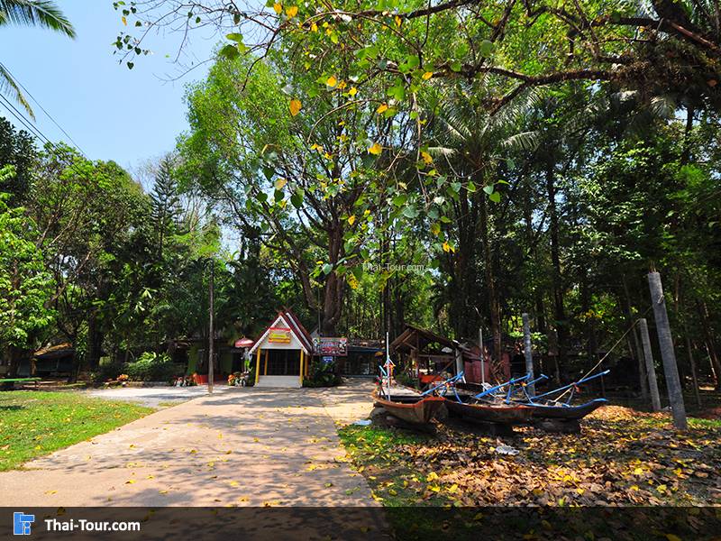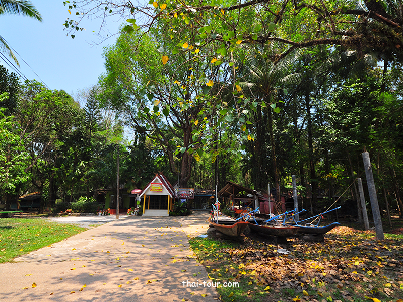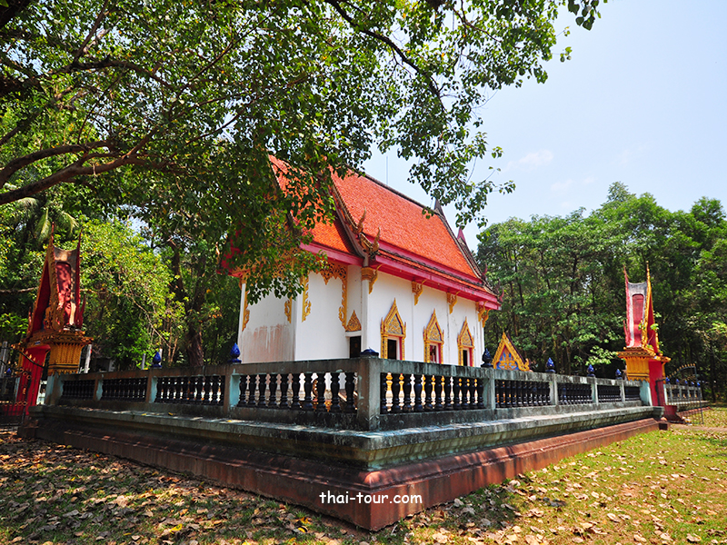 ตั้งอยู่หลักกิโลเมตรที่ 31-32 ถนนตราด-คลองใหญ่ (ทางหลวงหมายเลข 318) ตามเส้นทางไปคลองใหญ่ มีทางแยกทางซ้ายมือจากถนนเข้าสู่วัด วัดนี้ไม่ปรากฏว่าสร้างในสมัยใด สันนิษฐานว่ามีอายุไม่ต่ำกว่า 100 ปี กลางสระน้ำมีโบสถ์เก่าแก่ และอยู่ห่างวัดประมาณ 1 กิโลเมตร มีสันหินเชื่อมสองฝั่งคลองใช้เป็นทางคมนาคม