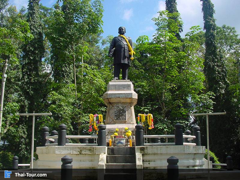 ตั้งอยู่ในเขตเทศบาลเมืองตรัง ทางไปจังหวัดพัทลุง ห่างจากใจกลางเมืองประมาณ 1 กม. ผู้ที่เดินทางไปถึงจังหวัดตรังทุกคนมักแวะไปทำความเคารพอนุสาวรีย์ของท่าน บริเวณนั้นแต่เดิมเป็นที่ตั้งพระตำหนักผ่อนกาย ซึ่งจัดรับเสด็จฯ พระบาทสมเด็จพระมงกุฎเกล้าเจ้าอยู่หัว ปัจจุบันได้ตกแต่งเป็นสวนสาธารณะอันร่มรื่น เวลาเย็นๆ มีประชาชนไปพักผ่อนเป็นจำนวนมาก พระยารัษฎาฯ ได้สร้างและทำนุบำรุงความเจริญแก่จังหวัดตรังไว้มาก เช่น ด้านคมนาคมในจังหวัดตรัง ด้านเกษตรกรรมและการเลี้ยงสัตว์ ด้านการศึกษา การปกครอง นโยบายรักษาความสงบและการสาธารณสุข ฯลฯ และเป็นผู้นำต้นยางต้นแรกที่ปลูกในจังหวัดตรัง จนแพร่หลายไปทั่วภาคใต้
