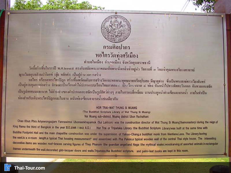 ความเป็นมาของหอไตรวัดทุ่งศรีเมือง