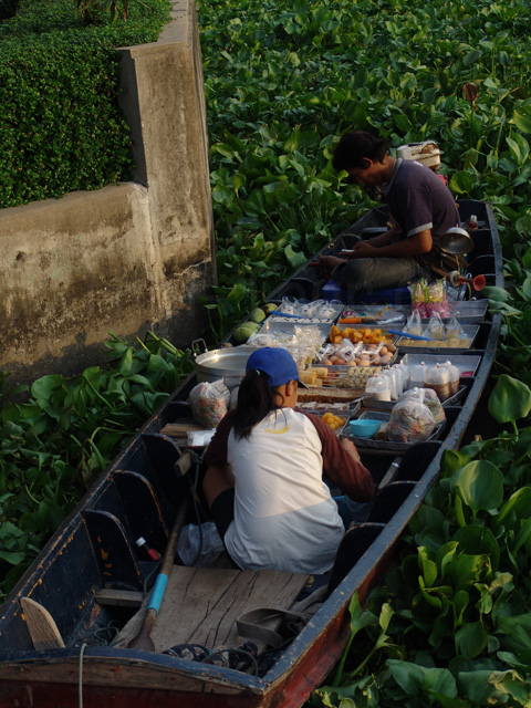 เรือพ่อค้า แล่นมาขายของริมแม่น้ำ