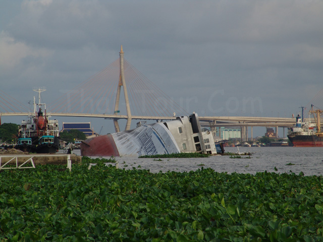 เรือจม คงไม่จมไปมากกว่านี้แล้วเพราะริมตลิ่งน้ำไม่ลึก