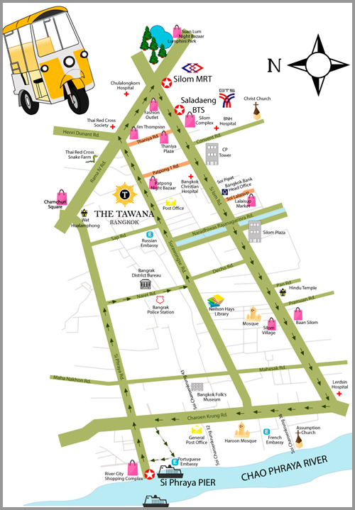 ** The “Tuk-Tuk” shuttle service is for the use of guests of The Tawana Bangkok on the assigned route ONLY (seating capacity : maximum of 4 passengers ONLY)