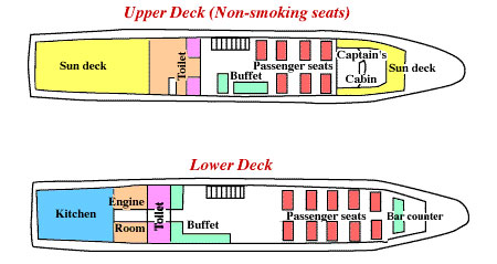 thecomfort of the passenger rooms or the refreshing open air upper deck.