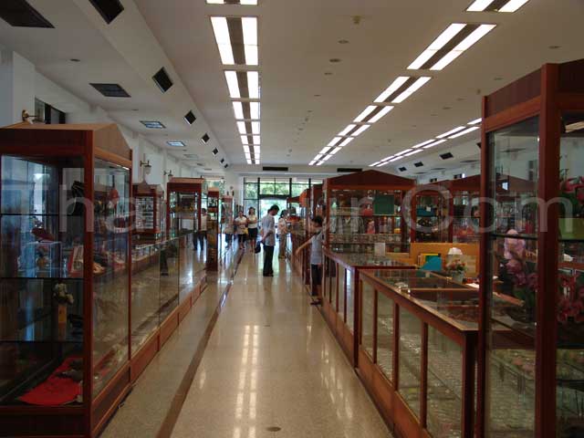 สูงสี่ชั้น มีผลิตภัณฑ์ เช่น เครื่องแก้ว เครื่องเซรามิก ผ้าทอ