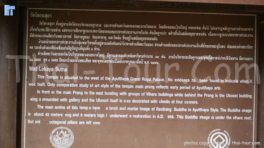 วัดโลกยสุธาราม สันนิษฐานว่าได้สร้างขึ้นในสมัยกรุงศรีอยุธยาตอนกลาง เนื่องจากวัดนี้มีพระพุทธไสยาสน์ ปางไสยาสน์ลักษณะสมัยอยุธยาตอนกลาง ก่ออิฐถือปูน พระพักตร์หันไปทางทิศเหนือ ที่พระเศียรมีดอกบัวรองรับ พระบาทซ้อนกันเป็นมุมฉาก นิ้วพระบาทยาวเท่ากัน มีความยาว ๔๒ เมตร และสูง ๘ เมตร