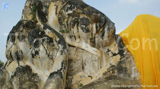 พระพุทธไสยาสน์องค์นี้ได้รับการขุดแต่งโดยโรงงานสุรา ร่วมกับกรมศิลปากร เมื่อปี พ.ศ. ๒๔๙๗ และต่อมาในปี พ.ศ. ๒๕๓๒ คุณหญิงระเบียบ ธำรงนาวาสวัสดิ์ และครอบครัว ได้บูรณะพระพุทธไสยาสน์เพื่ออุทิศส่วนกุศลให้แก่ นาย ธำรง และ พลเรือตรีถวัลย์ ธำรงนาวาสวัสดิ์ อดีตนายกรัฐมนตรี