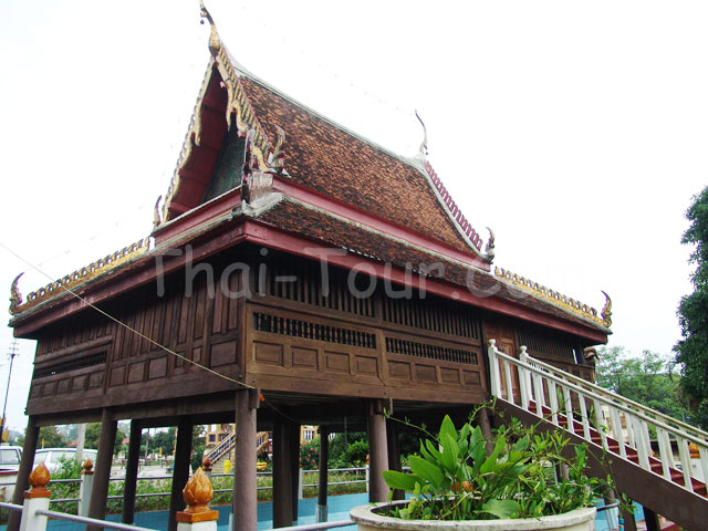 หอพระไตรปิฎกแห่งนี้สร้างแบบทรงไทยตั้งอยู่กลางสระน้ำ