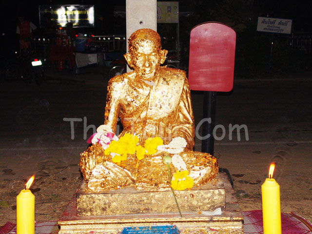 รูปปั้นปิดทอง หลวงปู่ศุข แห่งวัดปากคลองมะขามเฒ่า