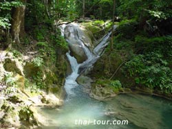 ลักษณะเป็นน้ำตกหินปูนสีเหลือง สายน้ำใสสะอาด