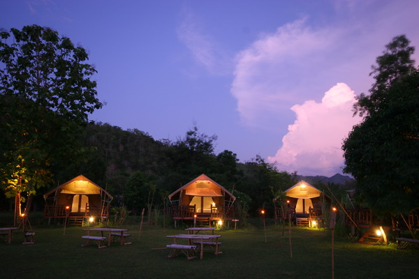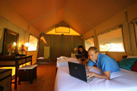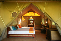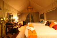 spaciously deluxe canvas tents, featuring private bathrooms and outdoor