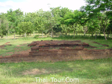 ฐานก่อด้วยศิลาแลงด้านบน ก่อด้วยอิฐ ด้านหลังมีบ่อน้ำก่อด้วยศิลาแลง