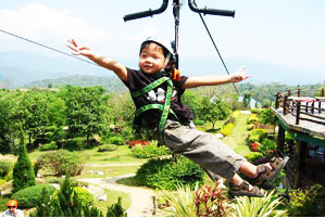 เป็นกิจกรรมผจญภัยในแบบทาร์ซานยุคใหม่ โลดแล่นไปตามยอดไม้สูง ทั้ง 4 ด่าน