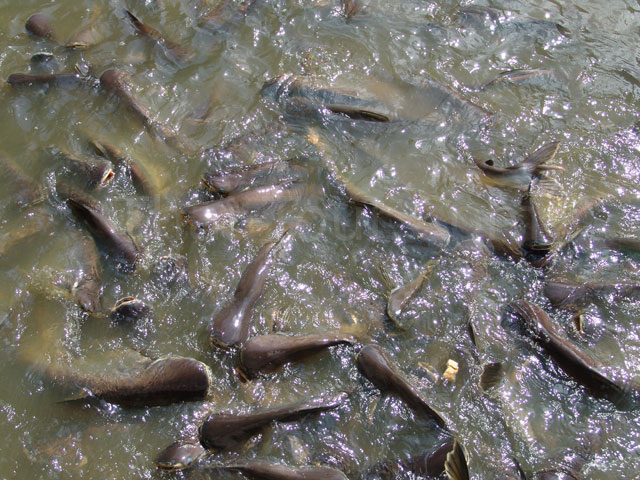 ปลาสวาย อาศัยอยู่ในคลองรังสิตประยูรศักดิ์ บริเวณหน้าวัดซึ่งได้เลี้ยงไว้