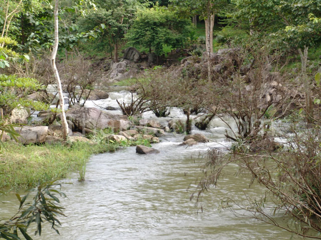 เป็นลำธาร มีเกาะแก่งกลางน้ำภาชี