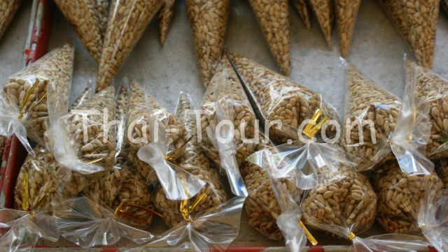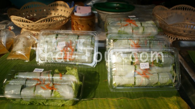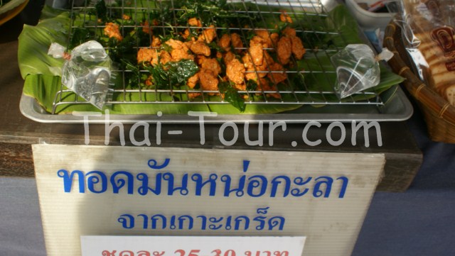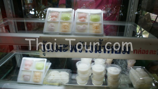 และผลิตผลของชาวบ้าน เช่น มะพร้าวอ่อน มะม่วง น้ำดอกไม้ กล้วยหอม