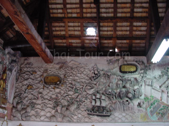 เป็นปูนปั้นลวดลายนูนแสดงเรื่องเกี่ยวกับพระพุทธประวัติ