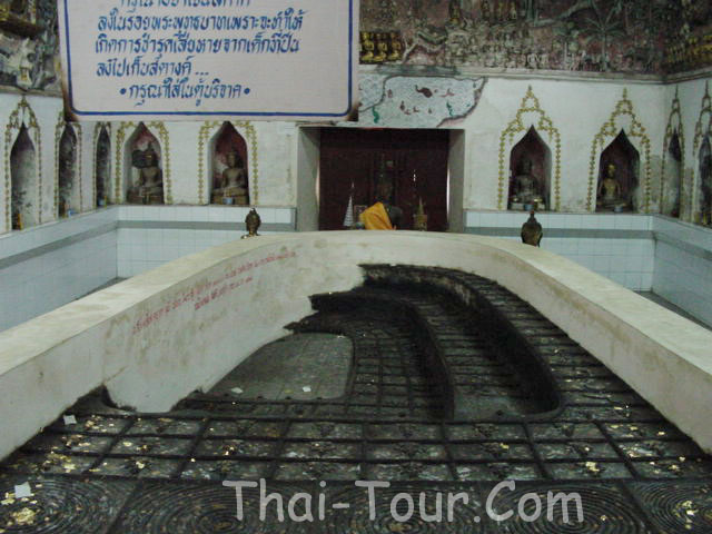 นอกจากนี้กลางวิหารยังประดิษฐานรอยพระพุทธบาทจำลองขนาดใหญ่ซ้อนกันสี่รอยลดหลั่นกันไป