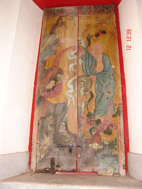 บานประตูเก่าแก่หน้าโบสถ์บนยอดเขา