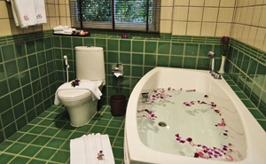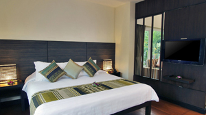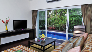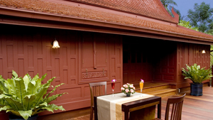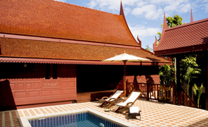 The contemporary Rattanakosin style villas offer comfortable stay with separate living area. Each unit has its own private pool with Jacuzzi for private relaxation. The bathroom comes with a bath tub and a shower room.