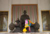 ไม่มียี่ก่า (ขนนก) สวมพระบาทด้วยรองเท้าแตะไม่หุ้มส้นพระบาท