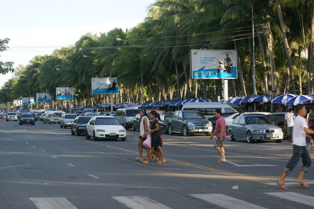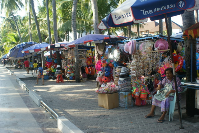 มีถนนตัดเลียบชายหาด ซึ่งเรียงรายไปด้วยร้านอาหารและที่พัก