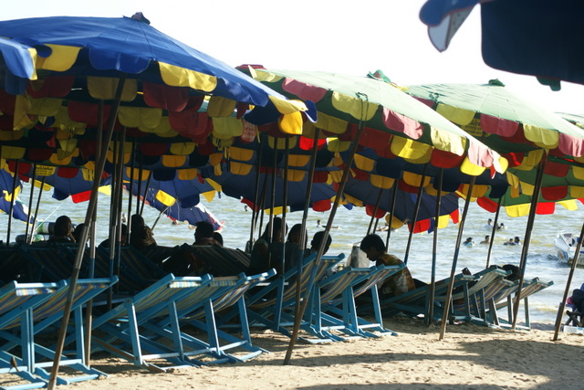 ลงที่สี่แยกเฉลิมไทยในตัวเมืองชลบุรีแล้วต่อรถสองแถวไปยังหาดบางแสน