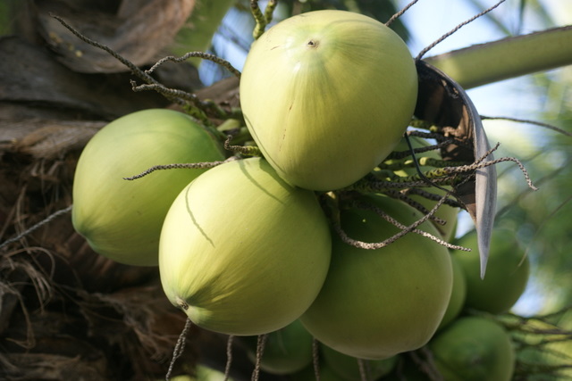 มีเก้าอี้ผ้าใบสำหรับพักผ่อนรับประทานอาหารใต้ร่มเงาทิวมะพร้าว