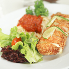 Marinated baby shrimps served with diced apple on a bed of lettuce with a