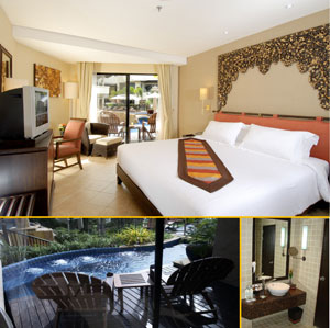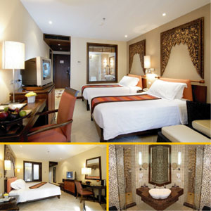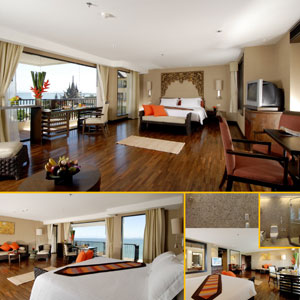 Thai de’cor are offset by picture-window views from private balconies.
