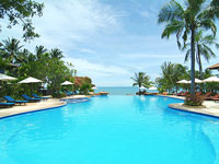 •A beachfront free-form swimming pool with Jacuzzi and a pool