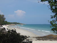 หาดทรายขาวละเอียดยาวประมาณ 800 เมตรเป็นหาดที่สวยงามที่สุดของเกาะ หาดที่ไม่เคยหลับ มีกิจกรรมให้ทำทั้งวันเหมาะสำหรับคนขี้เหงา มีสิ่งอำนวยความสะดวกมากมายไม่ว่าจะเป็นร้านอาหาร ที่พัก รีสอร์ท มากมายให้เลือกพัก น้ำตื่น ไม่มีโขดหินเหมาะแก่การทำกิจกรรมทางน้ำ คายัค  อาบแดด ยามค่ำคืนหาดนี้จะคึกคักไปด้วยผู้คน บาร์ ร้านอาหารจะนำเสื่อมาปูพร้อมด้วยโต๊ะอาหารสำหนับนั่งกินบนพื้นมีที่นั่งคล้ายหมอนมีพนักพิง กางยื่นไปไหนทะเล ทานอาหารท่ามกลางแสงเทียนได้บรรยากาศไปอีกแบบ ถ้าต้องการความเงียบสงบส่วนตัวต้องเดินไปท้ายๆเกาะ หาดทรายแก้วอยู่ไม่ไกลหน้าด่านระยะทางประมาณ 800 เมตร นักท่องเที่ยวสามารถเดินมาได้หรือนั่งรถโดยสารที่จอดรอให้บริการได้ สำหรับที่พักมีให้เลือกมากมายหลายราคา หลายระดับ เรียกว่ามีตลอดแนวเลยก็ว่าได้