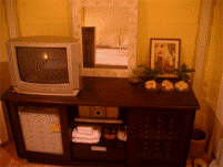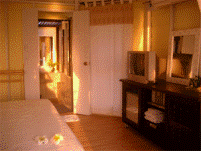 - Air, TV, DVD, Fridge, Hot Water, smell candle, open air bath room.