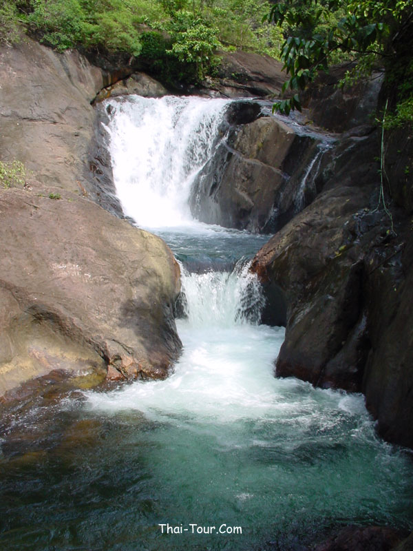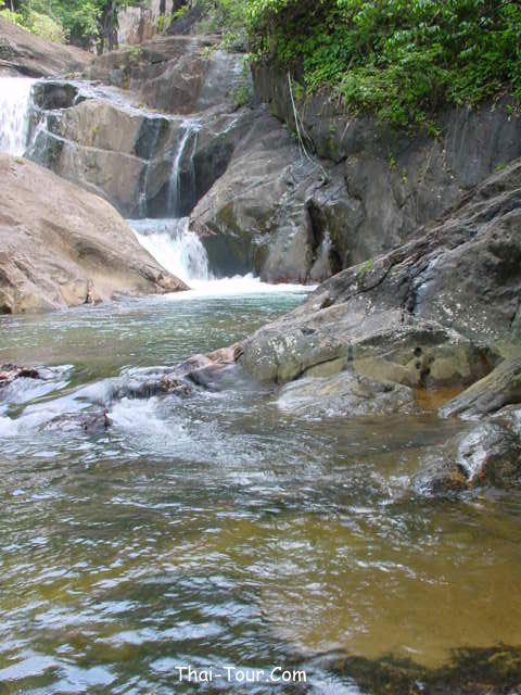 เดินผ่านสวนผลไม้เข้าไปประมาณ 500 เมตร เป็นน้ำตกขนาดกลาง