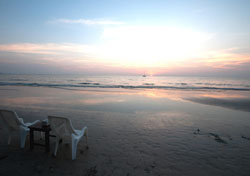 on the beach, right by the sea with beautiful sun set view. Fresh