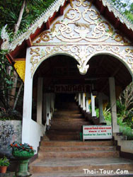 ทางเข้าถ้ำเป็นบันไดมีหลังคามุงสังกะสี