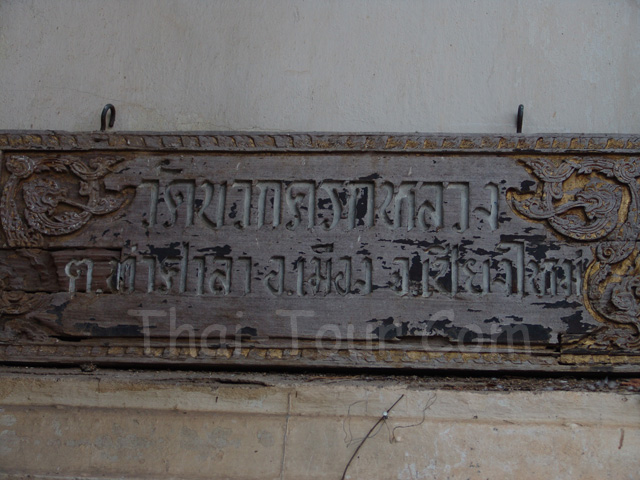 หน้าบันวิหารเป็นหน้าบันสลักไม้แบ่งเป็นช่องแบบฝาปะกน แต่ละช่องแกะลายประดับกระจกสวยงาม และมีจารึกบอกปี พ.ศ. 2468 สันนิฐานว่าเป็นปีที่มีการบูรณปฏิสังขรณ์ ผนังด้านนอกของตัวอาคารจะมีปูนปั้นรูปเทพพนมประดับอยู่ตามมุม ด้านบนเป็นคันทวยลักษณะเป็นสามเหลี่ยม ทำด้วยไม้ มีอยู่ 2 ลายคือ คันทวยด้านหน้าทั้งสองข้างทำเป็นรูปหนุมานเหยียบเมฆ ส่วนในตำแหน่งอื่น ๆ จะเป็นลายเมฆไหลท่านั้น