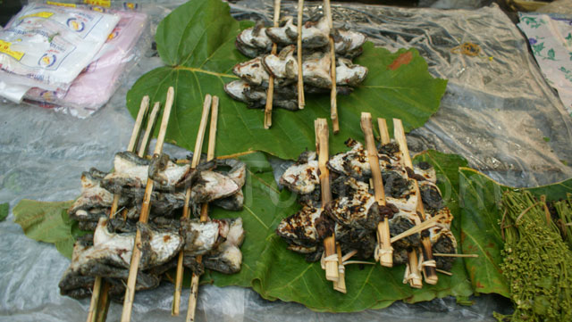 ปลาแห้ง ถั่ว เห็ดหอม หมูยอ เส้นก๋วยเตี๋ยว แหนม ปลาทอด หมูกรอบ ปลาเส้น ห่อหมก ฯลฯ