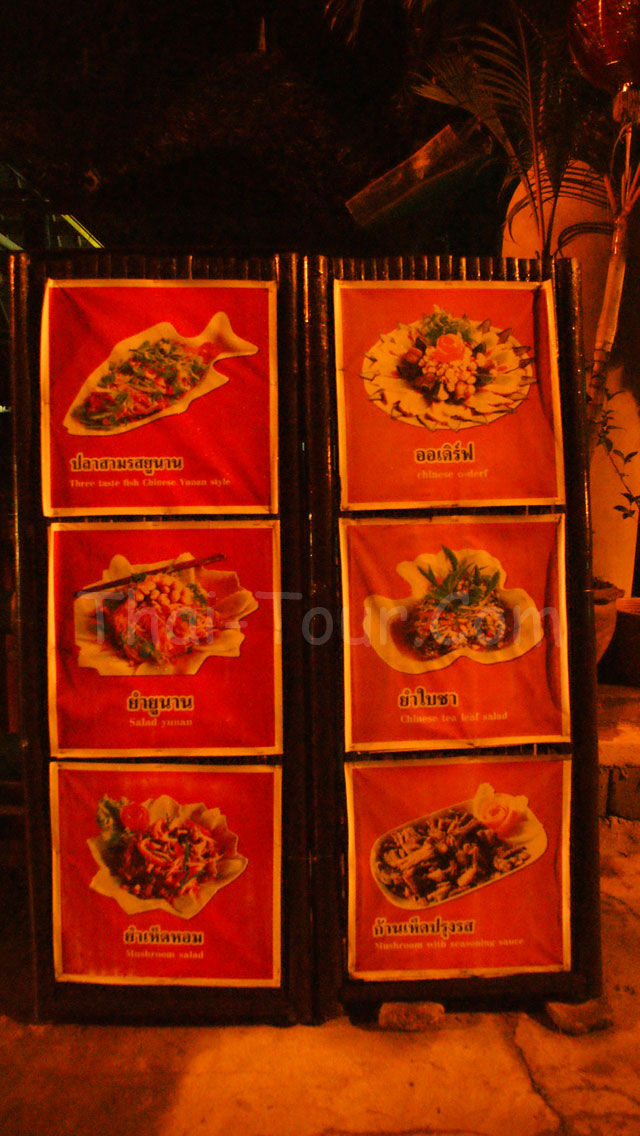 -อาหารจีนตำรับยูนาน หลายร้านจะมีป้ายเชิญชิม เมนูที่ขึ้นชื่อเช่น