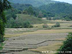 ทุ่งนาแบบขั้นบันได (น่าเสียดายที่เป็นช่วงหลังเก็บเกี่ยว)