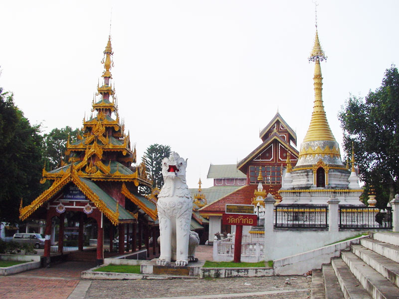 “วัดก้ำก่อ” (ก้ำก่อภาษาไทยใหญ่แปลว่า "ดอกบุนนาค")หนึ่งในวัดเก่าแก่คู่เมืองสามหมอก สร้างเมื่อ พ.ศ. 2433 ด้านหน้าวัดโดดเด่นด้วยสิงห์คู่ศิลปะไทยใหญ่ 2 ตัวยืนขนาบซ้ายขวา ถัดไปฟากถนนเป็นเจดีย์สมส่วนขนาดย่อม ส่วนอีกฟากหนึ่งเป็นทางเดินหลังคาคลุม มีซุ้มประตูหลังคาซ้อนชั้นตกแต่งลวดลายฉลุสังกะสีอย่างวิจิตรบรรจง ทางเดินสายนี้นำเข้าสู่ศาลาอันขรึมขลัง ข้างในมีพระพุทธรูปศิลปะไทยใหญ่-พม่า อันสวยงามให้สักการะบูชา