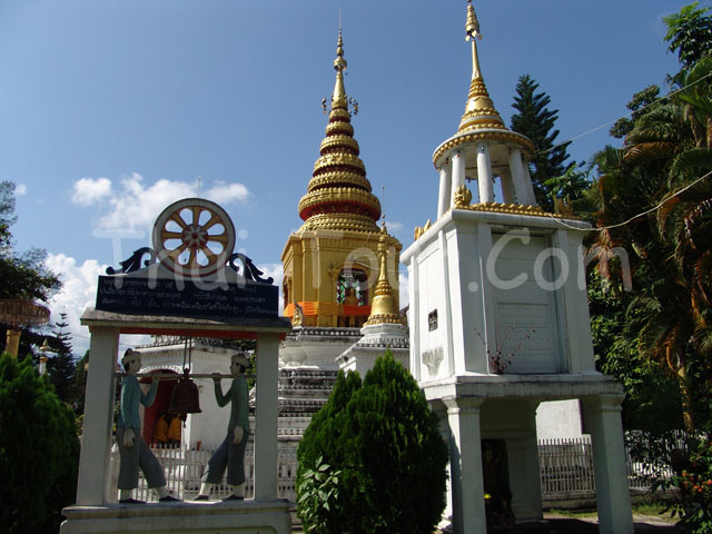 ตั้งอยู่ที่ตำบลเวียงใต้ ภายในวัดมีพระเจดีย์องค์ใหญ่ ศิลปไทยใหญ่แท้ประดิษฐานอยู่กลางลานวัด มีเจดีย์ทรงมอญรายล้อมโดยรอบใต้เจดีย์ทำเป็นซุ้มประดิษฐานพระพุทธรูปประจำวัน เหนือฐานเจดีย์องค์ใหญ่ทำเป็นมณฑปยอดมงกุฎ