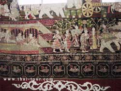 ตู้พระธรรมซึ่งนำมาจากเมืองมะละแหม่ง แกะสลักอย่างสวยงามจำนวน ๒