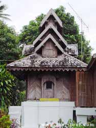 มีหลังคาลดชั้นและลวดลายแกะสลักไม้ปัจจุบันนี้ยังใช้งานได้ดี อนึ่ง