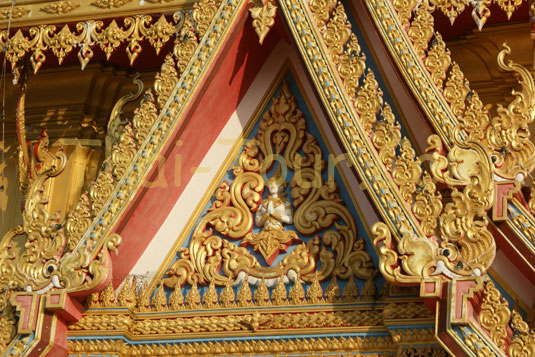 ปูนปั้น หน้าตัก ๔ ศอก ๙ นิ้ว ทาทองน้ำสีเหลืองเป็นที่สิง