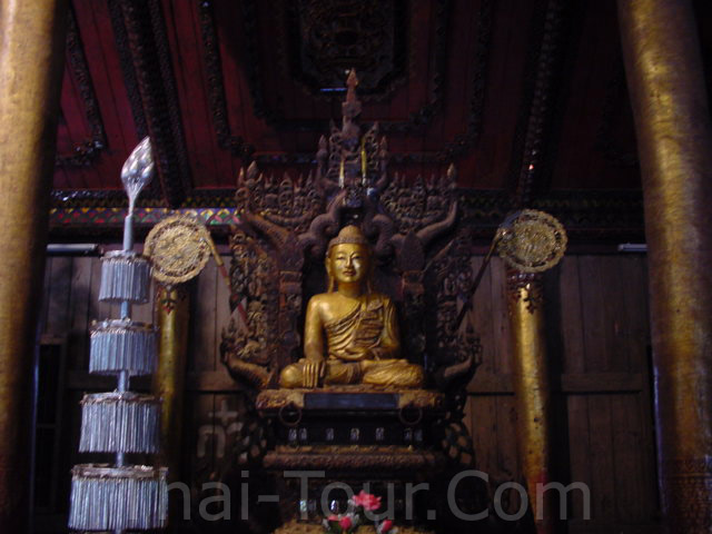 ตำบลออย อำเภอปง)เป็นพระพุทธรูปปางมารวิชัย แกะสลักจากไม้สักทอง