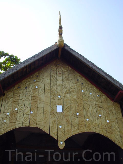 ศิลปะโบราณอยู่บนหน้าจั่วของโบสถวัดศรีปิงเมือง